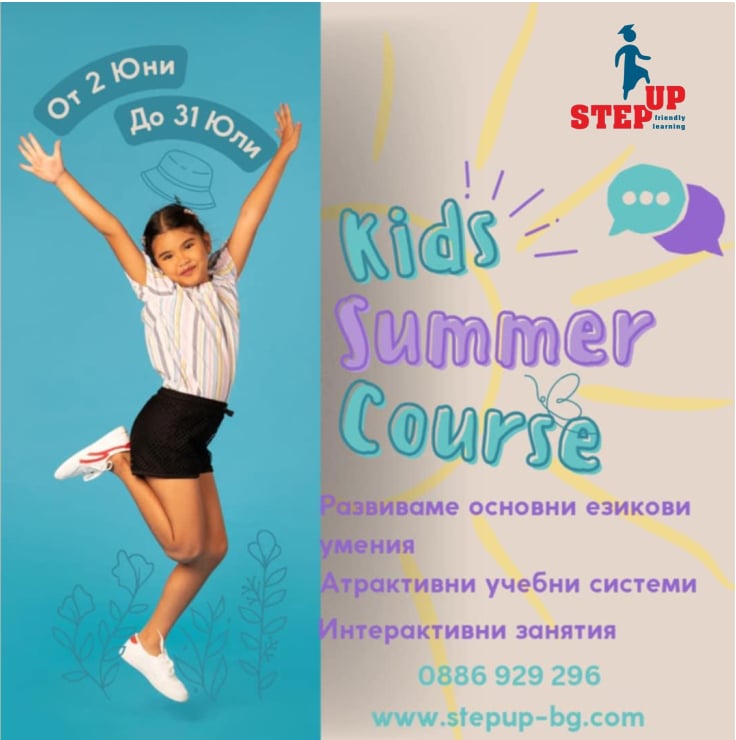 С летните езикови курсове на Step Up децата и учениците изграждат своята увереност и самочувствие на езика, изучавайки го в една вълнуваща среда, с незабравими летни преживявания. Летните курсове ще осигурят стабилен напредък дори при напълно начинаещи, мотивира и увлича децата, така че позитивното изкарване е гарантирано!